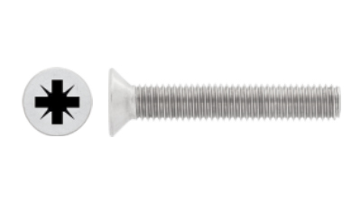 Countsunk Pozi drive Machine Screws are made to DIN965 and available in 304 and 316 Grade.