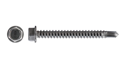 Self Drilling Screws are designed specifically for drilling through thin sheet metal, and are available in a range of head types, drives and stainless steel grades. For less corrosive applications, 410 grade stainless steel can be used which is harder than the 300 series grades and drills well. For more corrosive environments and to use externally, Hardtec grade stainless steel is more appropriate. Hardtec is a grade with the hardness of 410 stainless steel but with the chemistry changed to improve its corrosion resistance.